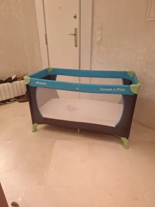 Cuna de viaje Hauck modelo Dream n Play, ideal para transportar y usar en cualquier lugar. Usada en 5 visitas a casa de familiares. - Color azul y gris. - Diseño plegable para fácil almacenamiento. Colchón 120x60 Super nuevo. Dos caras, invierno y verano Dos fundas de colchón (protector) 2 Sábanas bajeras incluidas. Cuna llegada 76x20x20 Cuna abierta 75x123x63 Se entrega en Zaragoza, valencia o envíos Precio del conjunto Cada cosa por separado 35eur colchón y 35eur cuna