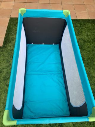 Cuna de viaje Hauck modelo Dream N Play en color azul y verde. Es plegable y fácil de transportar. - Marca: Hauck - Modelo: Dream N Play - Color: Azul y verde - Diseño: Plegable Precio: Cuna, colchón y ropa cama (2 cubrecolchón y 3 sábanas bajeras) 70€. Cuna y colchón 60€. Solo cuna 45€.