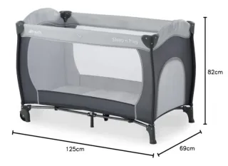 Cuna de viaje plegable de la marca Hauck, modelo Sleep n Play. Ideal para transportar y usar en diferentes lugares. - Diseño en color gris y antracita. - Laterales de malla para ventilación. - Estructura metálica. - Ruedas para facilitar el desplazamiento.