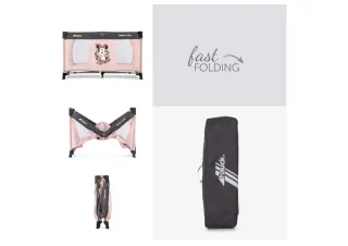 Cuna de viaje plegable Hauck Dream n Play con un bonito diseño de Minnie Mouse más colchón de calidad nuevo. - Color rosa. - Incluye colchón. - Plegable para fácil transporte y almacenamiento.