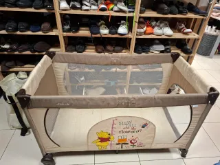 Cuna de viaje portátil con diseño infantil de Winnie the Pooh. - Color beige y marrón. - Incluye bolsa de transporte. - Laterales de malla transpirable.