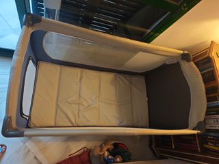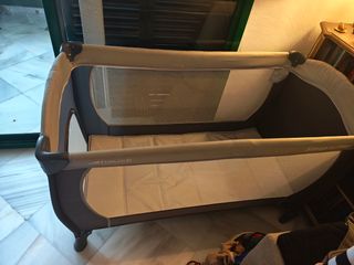 Cuna de viaje marca Hauck. Con poco uso. Muy practica al poder plegarse ocupando muy poco espacio y desplazarse con ruedas. Con soporte que se acopla a la cuna y se usa como cambiador. Tambien sirve como cuna fija. No tiene colchon