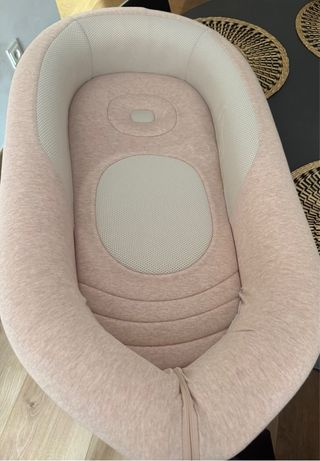 Nido para bebé de la marca Inglesina, modelo Welcome Pod. Ayuda al bebé a relajarse y dormir más fácilmente porque lo envuelve en un espacio acogedor que lo hace sentir protegido. También es muy útil cuando el bebé se está iniciando en el tummy time y para utilizarlo de cuna improvisada de viaje ya que con la funda se transporta muy fácil y no ocupa mucho. Se adapta al crecimiento gracias a la abertura en la parte inferior y al cilindro anatómico regulable anticólicos. Está muy cuidado puesto que solo lo hemos utilizado para unas cuantas siestas y siempre con funda o muselina. Nuevo nos costó 139€.