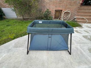 Cuna de viaje BabyBjorn en color azul, con muy poco uso. - Estructura plegable y ligera. - Laterales de malla transpirable. - Incluye colchón. Precio compra ECI 217€ #bugaboo #babyborjn #cunaviaje #puericultura