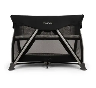 Práctica cuna y parque infantil de la marca Nuna, ideal para viajes o uso diario. - Diseño plegable para fácil transporte. - Laterales de malla transpirable. - Estructura robusta y segura.
