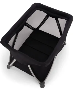 Cuna de viaje Nuna, práctica y fácil de montar. - Diseño moderno en color negro. - Colchón acolchado. - Laterales de malla transpirable.
