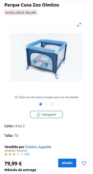 Parque de viaje modelo Zoo Olmitos en color azul. -Producto nuevo, nunca sacado de la caja. - Diseño con estampado. - Ruedas para facilitar el desplazamiento. - Estructura plegable.