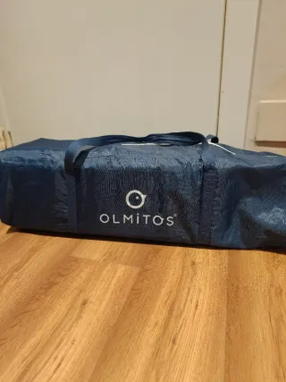 Cuna de viaje plegable de la marca OLMITOS. - Color azul. - Incluye bolsa y asas para su transporte. - Dispone de puerta frontal con cremallera para poder utilizar de parque infantil. - Poco uso.