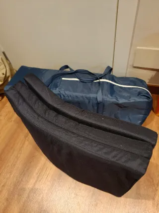 En perfecto estado. Se vende con colchon de espuma para así tener más altura y que sea mas comoda, ademas del colchón plegable que ya viene incorporado.
