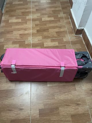 Cuna de viaje de la marca Olmitos en color rosa. Incluye colchón. - Laterales de malla transpirable. - Ruedas para facilitar el transporte.