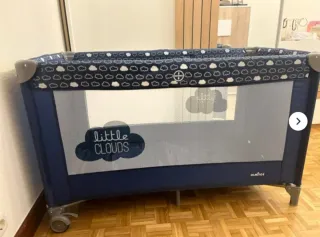 Cuna de viaje plegable, ideal para transportar y usar en cualquier lugar. Su diseño permite un montaje y desmontaje rápido. - Estructura de metal. - Laterales de malla transpirable. - Incluye bolsa de transporte. Además colchón de cuna + funda + almohada + colchón + funda nórdica (zara kids) + relleno Se recoge en código postal 28944