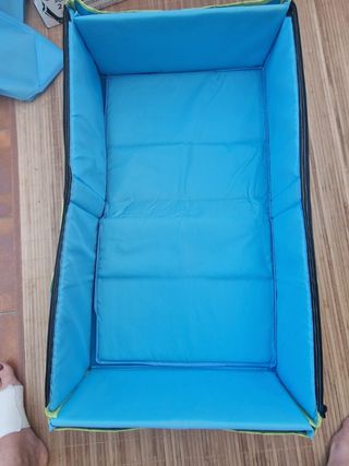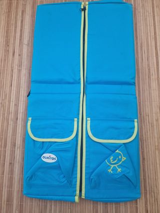 Colchón diseñado para las cunas de viaje, es práctico y confortable y está fabricado con materiales de gran calidad. Cuenta con un tejido superior de algodón suave y un tejido para la parte inferior de malla 3D que mejora la transpiración. Es fácil de limpiar gracias a su funda que se quita con una simple cremallera. Medidas abierto: 60 x 6 x 120 Medidas cerrado: 60 x 28 x 28 - No se ha usado por tamaño de cuna diferente. - Precio original: 39€ - Venta solo en persona.