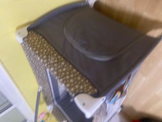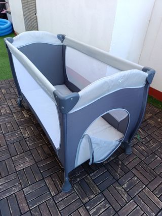 Preciosa cuna de viaje para bebés, perfecta para llevar de vacaciones o tener en casa. Tiene algún agujero pequeño en la tela y algún pequeño desgaste en la pintura metálica, pero no sé aprecia demasiado. - Cuna de viaje ligera y plegable. - Ideal para bebés y niños pequeños. - Estructura de tela resistente y malla transpirable. - No incluye colchón