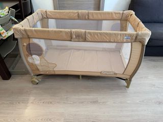 Parque cuna de viaje de la marca Chicco, ideal para llevar a todas partes. - Diseño plegable. - Laterales de malla transpirable. - Estructura resistente. Usada 3 solas veces, está nueva