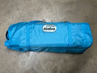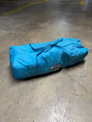 Cuna de viaje de la marca Asalvo en color azul. Es compacta y fácil de transportar. - Incluye asas de transporte. - Diseño plegable. -ruedas -con colchon plegable (ver ultima foto)