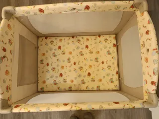 Cuna de viaje plegable en perfectas condiciones, ideal para transportar y usar en cualquier lugar. Incluye colchon. - Medidas: Cuna viaje 126 x 66 cm Colchon 120 × 60 y 12 cm grosor - Estructura resistente y segura. - Laterales de malla para ventilación. - Diseño con divertidos dibujos infantiles.