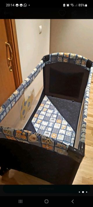 cuna bebe se puede graduar a doble altura 60 y 30cm tiene incluido cambia pañales vale para viajes ,comprada del corte ingles.muy buena la calidad