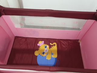 Cuna de viaje en buen estado sin ningún desperfecto y colchón de espuma que se plega en tres partes para poder transportadlo fácilmente (no he puesto foto). Fácil de montar. Está todo en buen estado.