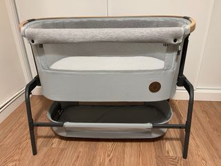 Cuna colecho Maxi Cosi Iora color beyond grey. Ideal para tener al bebé cerca. Se incluye en el precio colchón a medida de 80€ específico para la prevencion de plagiocefalia y antiasfixia por volteo. Esta en muy buen estado, muy poco uso. Se entrega con funda de viaje y correas. Todo nuevo costó 310€