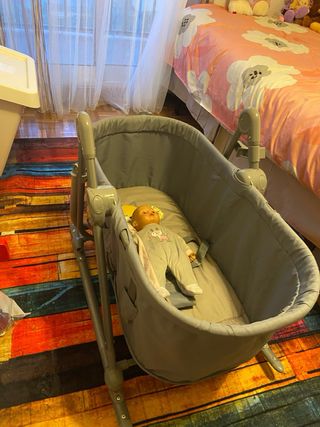 Cuna de viaje TOTALMENTE NUEVA, SIN ESTRENAR. Sacada de su caja para hacer las fotos. En las fotos se ve que las ruedas están de fábrica. Con dos alturas desmontable. Con rejilla con cremallera para que tu peque pueda entrar y salir y un bolso lateral de almacenaje. Cambiador de bebe con almacenaje para dejar pañales, toallitas, cremas, etc. Incluye juguetito colgante y colchoneta. Medidas plegado: 24x23x79,5 Peso: 10 kg