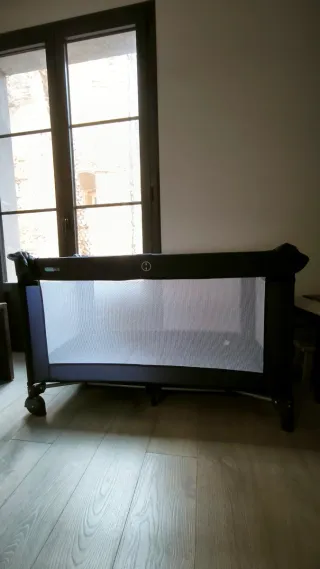 Práctica cuna de viaje plegable, ideal para transportar y usar en cualquier lugar. - Diseño compacto y ligero. - Fácil de montar y desmontar. - Laterales de malla para ventilación. Compramos un colchón a parte, plegable también, para que nuestra hija durmiera más cómoda.