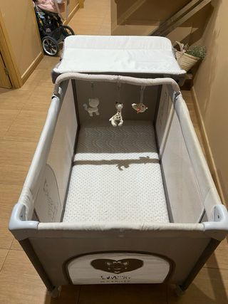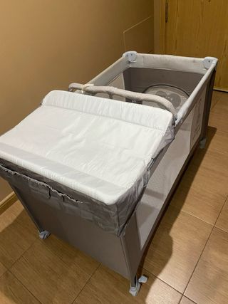 Cuna de viaje con cambiador y colchón enrollable. Está en muy buen estado. el colchón es enrollable y tiene su funda independiente y la cuna queda completamente pleglable. en su funda.