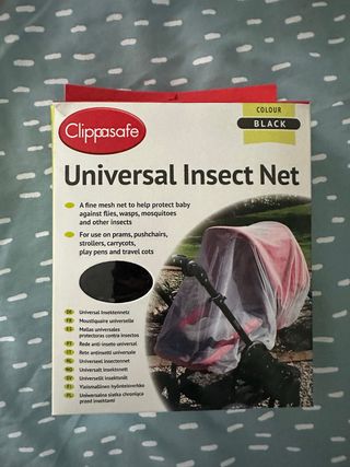 Mosquitera universal de la marca Clippasafe, ideal para proteger a los bebés de insectos. - Malla fina para proteger contra moscas, avispas y mosquitos. - Apta para carritos, sillas de paseo, cunas de viaje y parques infantiles. - Color: Negro.
