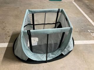 Un concepto innovador y revolucionario multifunción para el momento del sueño que se presta a diferentes posibilidades de uso. Cuna/nido: puede realizar funciones de cuna de viaje para bebés, para uso doméstico diario, playa, piscina, acampada, etc. Es al mismo tiempo una cuna, una cama de viaje y una cama de playa. -Con protección UPF5+ y mosquitera. -Se abre sólo en 2 segundos gracias a su sistema de apertura automática pop-up. -Pesa 1,5 kg y cerrado ocupa poco espacio. -Incluye colchón de aire inflable, estera y bolsa de transporte. Se encuentra en buen estado.