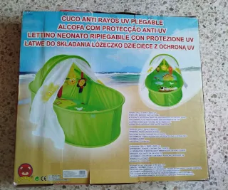Práctico cuco o cuna de viaje plegable, ideal para proteger a los más pequeños de los rayos UV. Fácil de montar y desmontar. - Diseño plegable para fácil transporte y almacenamiento. - Protección UV para resguardar del sol. - Incluye capota y móvil de juegos.