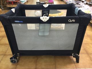 Vendo cuna de viaje de la marca Nuna, en color gris, con sistema de dos alturas (para recién nacido y para bebé más grande). ✔️ Plegado fácil y compacto ✔️ Incluye colchón extra con funda a medida ✔️ Laterales de malla transpirable para mayor seguridad ✔️ Muy resistente y estable, ideal para casa o viajes ✔️ Se entrega con su bolsa de transporte original