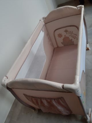 Cuna De Viaje Jungle Friends Deluxe Beige (plegada 78x30cm). Con colchoneta cambiador, barra para juguetes y mosquitera. Sin apenas uso, está impecable