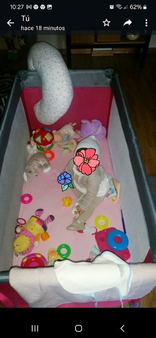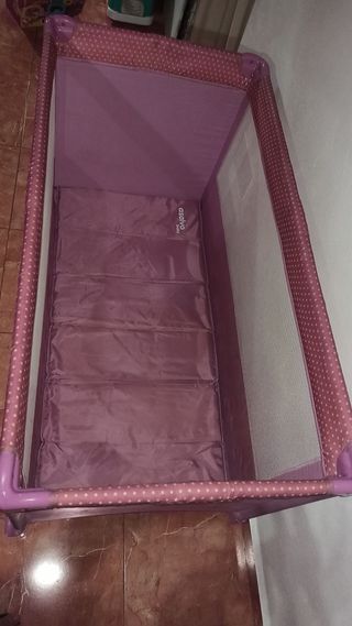 Minicuna de viaje plegable, ideal para llevar a cualquier parte. Su diseño permite un fácil montaje y desmontaje. - Estructura resistente y segura. - Tejido transpirable. - Incluye mosquitera. se ha usado una única vez