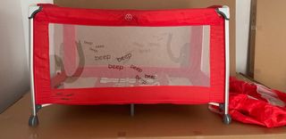 Preciosa cuna de viaje Jané, con doble altura, en muy buen estado. Incluye un arco de juegos con peluches. Ideal para viajes o para tener una cama extra en casa. - Cuna de viaje Jané. - Marca: Jané. - Color: Roja, negra y gris. - Con ruedas con freno para un cómodo transporte sin esfuerzo. - Doble altura. Sujeción con cremallera, velcros y arnés para mayor seguridad. - Prácticamente a estrenar. Usada tres veces. - Arco de juegos con juguetes. - Funda. - Regalo colchón plegable azul marino. Desenfundable y lavable. Debidamente plegado y en su bolsa original.