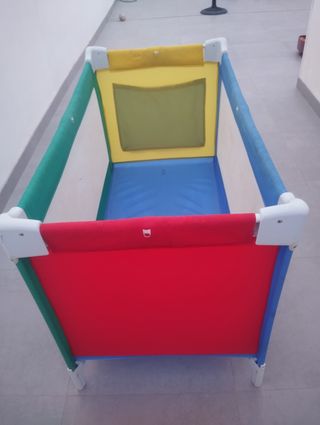 Preciosa cuna de viaje infantil, ideal para que tu pequeño descanse cómodamente donde sea. Se encuentra en buen estado. - Incluye colchón. - Estructura plegable y fácil de transportar. - Diseño colorido y alegre.
