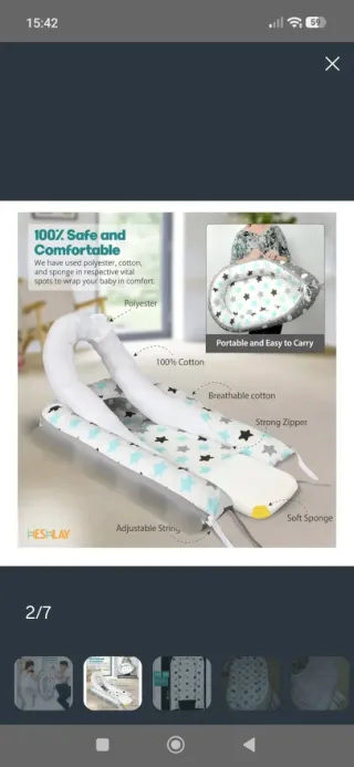 Nuevo a estrenar Nido para bebé con un diseño de estrellas en tonos grises y blancos. Proporciona un espacio seguro y cómodo para el descanso del bebé. - Medidas: 90x50 cm. - Amplio parachoques para mayor seguridad. - Diseño de estrellas. Borde estable para una seguridad óptima. ALGODÓN 100% ORGÁNICO- Relleno de poliéster y algodón orgánico Util cono un moisés una cama, una tumbona, una cuna de viaje, una almohada para recién nacidos o un cambiador Colchón relleno con escamas de silicona 100% antialérgicas, por lo que previene perfectamente la irritación de la piel y se puede lavar por completo