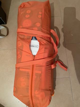 Cuna de viaje en perfectas condiciones con cambiador encima muí práctico de varios colores y con dibujos,a la hora de pegarlo es muí fácil y se recoje como si fuera una maleta y de regalo una ropa