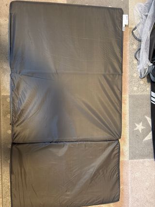 Colchón para cuna de viaje que también vale como alfombra de juegos.Se pliega, se puede puede poner en forma rectangular para cuna o cuadrada para juego. Es desenfunda ble y está en buen estado.