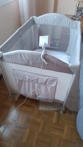 cuna de viaje completa, con colchón nuevo, cambiador..