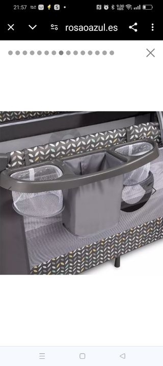 cuna con doble altura, cambiador y saquito para pañales y toallitas
