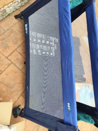 Cuna de viaje Bbest en color azul marino. - Estructura de metal. - Laterales de malla transpirable. En su caja original y bolsa de hombro para llevar. Cómoda y fácil de usar. Con ella regalo 2 colchoncitos y 2 sábanas gratis. Usada 2 semanas de verano.