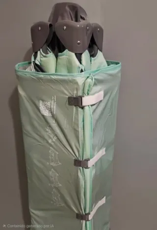 Cuna de viaje plegable en excelente estado, como nueva. Incluye colchón. - Fácil de plegar y transportar. - Ideal para viajes o uso ocasional. - Color gris y pistacho.