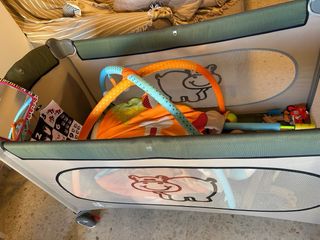 Vendo cuna de viaje en perfecto estado de conservación y mantenimiento. Utilizada en muy pocas ocasiones. La vendo porque el niño ya ha crecido lo suficiente y necesita una cama. Lleva funda para viaje y sistema para dos alturas.