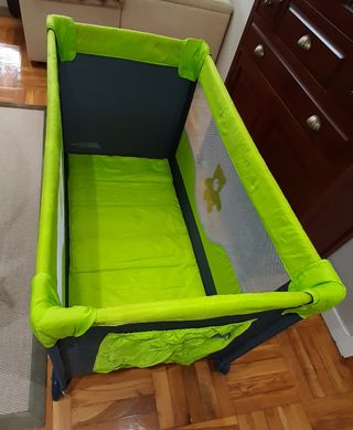 Cuna de viaje que ya no se usa, está perfecta tal cual las imágenes ideal para llevar en el coche.No tiene colchón aparte, solo colchoneta verde que se ve en las fotos.