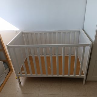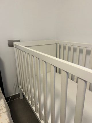 Vendemos cuna SUNDVIK de IKEA en color blanco (60x120 cm) junto con colchón de muelles. Todo está literalmente sin uso: nuestro bebé no ha querido dormir en ella (¡ha preferido nuestra cama, ay!). ✔️ Cuna valorada en 250 € (incluyendo colchón) ✔️ La vendemos por solo 120 € ✔️ Puede usarse como cuna normal, colecho y más adelante como cama bajita