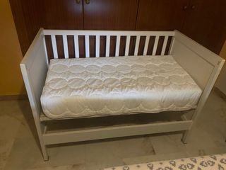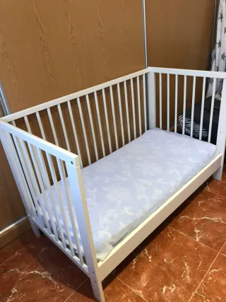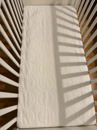 Se vende cuna Ikea con colchón antiasfixia. - Cuna con tres posiciones de somier incluido colecho. - Colchón antiasfixia My baby Mattress en perfecto estado (el colchon costo 190€). Con funda original para guardarlo, protector de colchon incluido y colchas. Todo con un precio total de 320€ a 160€