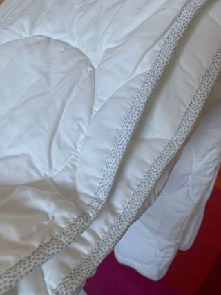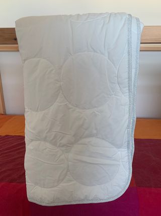 Poco uso. Medidas 120x125 cm. Peso relleno: 300gr. Peso total: 575 gr. Tengo a la venta en mi escaparate funda nórdica y almohada para esta medida.