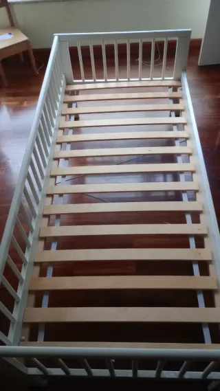 Cama infantil de la marca Ikea, que se va aumentando. - Color blanco. - Estructura de madera. - Incluye colchón de regalo( con funda) NO SE ENVÍA . Recoger en Miño