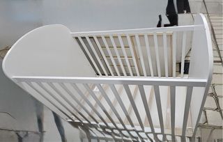 Cuna de bebé de la marca Ikea, en color blanco. Esta en perfectas condiciones y desmontada. Con las instrucciones y todos los tornillos. No sale en la web pero también se puede poner la cuna con las dos alturas con o sin barandilla