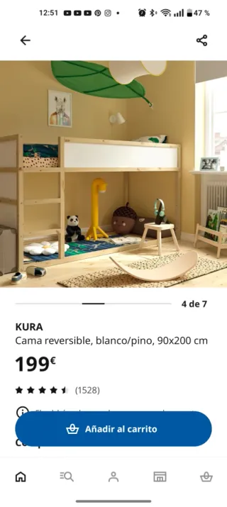 Litera KURA de IKEA. - Estructura de madera. - Diseño reversible, se puede montar con la entrada a la izquierda o a la derecha. - Ideal para aprovechar el espacio.