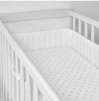 Protector acolchado para cuna de la marca Ikea. El diseño es blanco y medidas 60x120